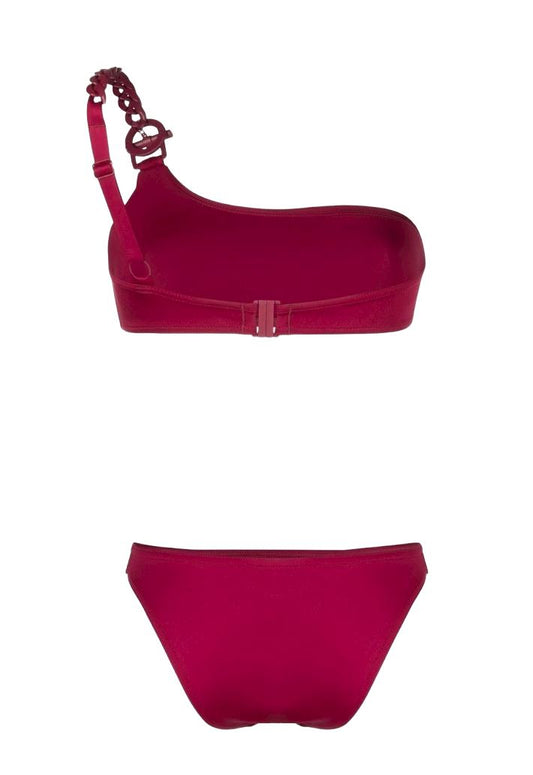 Zimmermann Tropicana Asymmetrical Bikini | One Shoulder, Low Rise, Ruby Pink/Red