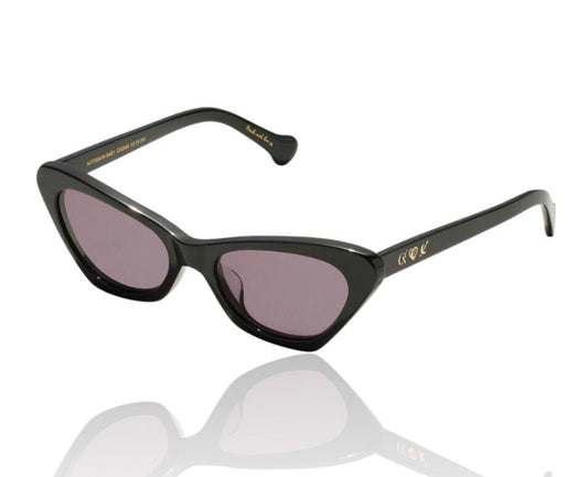 Camilla Champagne & Caviar Sunglasses | Solid Black, Cats Eye, Hand-Made, Slim