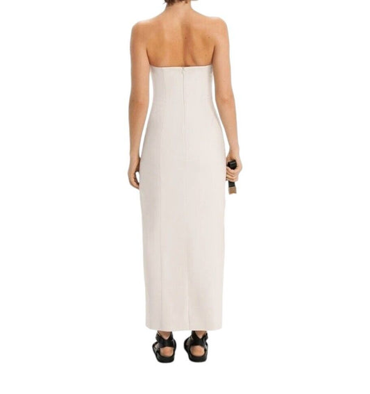 CUE Button Bandeau Midi Dress | Sz 8, Stretch, Off-White/Cream, Black Buttons