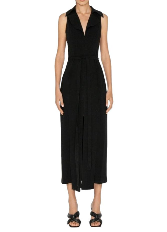 CUE Collared Maxi Dress | Black, Size 8, Belted, Sustainable, Ethical, Jacket