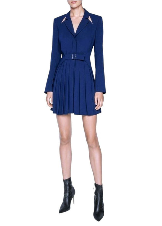CUE Cut-Out Blazer Dress | Cobalt Blue, Jacket, Shoulder Pads, Pleated, Belted