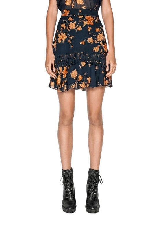 CUE Frill Mini Skirt | Floral/Polka dot frills, Viscose, Navy/Golden Floral