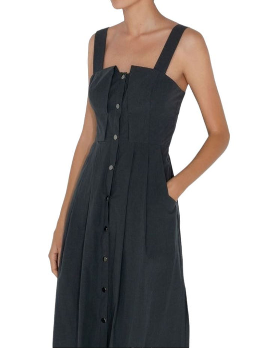 Cue Midi Dress | Snap Buttons Front, Size 6, 100% cotton, Dark Grey / Gunmetal