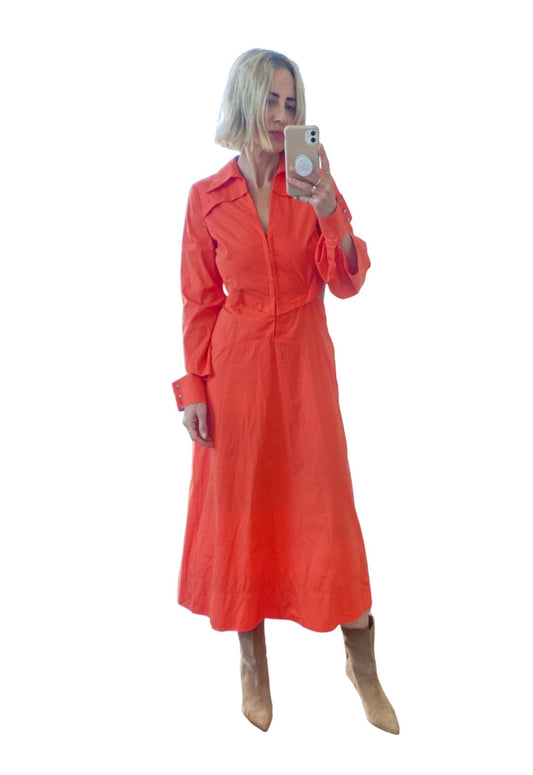 Cue Cut Out Shirt Dress | Orange, Cotton/Modal, Midi, Collared, A-Line, Cuffs
