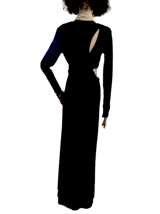 CAMILLA AND MARC Levante Midi Dress | Maxi, Black, Side Cut Outs, Low V Neckline
