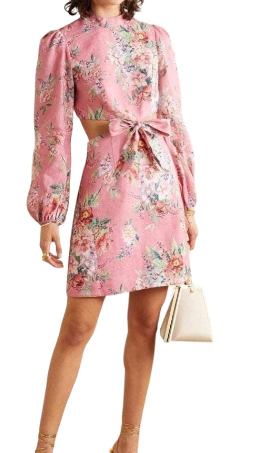Zimmermann Bellitude Bow Front Dress | Pink Floral, Dolman Sleeves, Cut Out