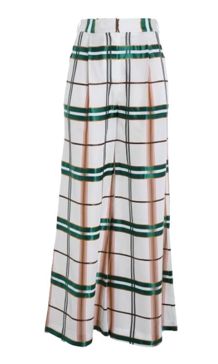 Zimmermann Dancer Wide Leg Pant | Natural Check, White/Black/Green, High Waist