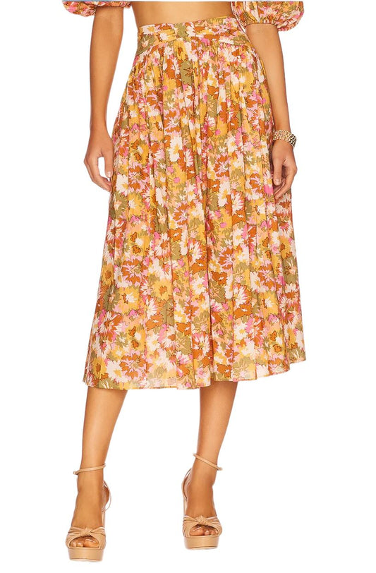 Zimmermann Violet Twist Waist Skirt | Khaki Floral, Midi, Cotton, High Waist