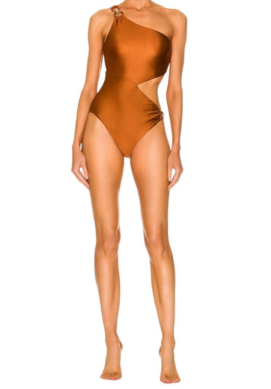 Zimmermann Violet Asymmetric One Piece Swimsuit | Caramel, One Shoulder, Cut Out