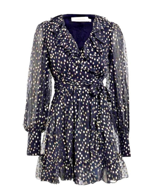 Zimmermann Lurex Wrap Mini Dress | Chiffon, Sheer, Lined, Dolman, Black / Gold