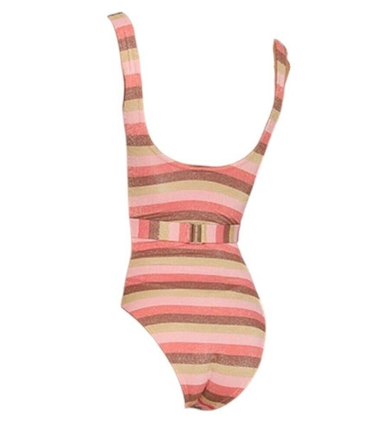 Zimmermann Vacay Lurex Scoop One Piece | Striped, Shine, Chain-Link Belt, Lined