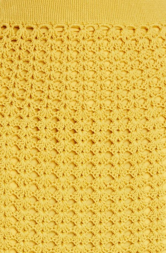 Zimmermann Laurel Crochet Midi Skirt |Mustard/Yellow/Pink, Cotton, Lined, Tiered