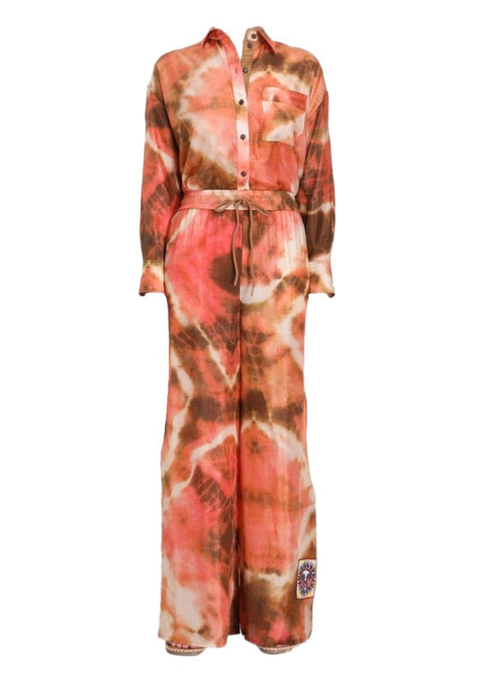 Zimmermann Vacay Relaxed Pant | High Waist, Red/Brown Tie Dye, Silk, Drawstring