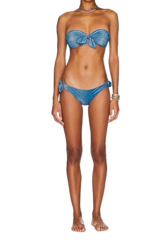 Zimmermann Raie Lurex Tie Bikini | Blue, Lurex, Bandeau, Remove Straps, Low Rise
