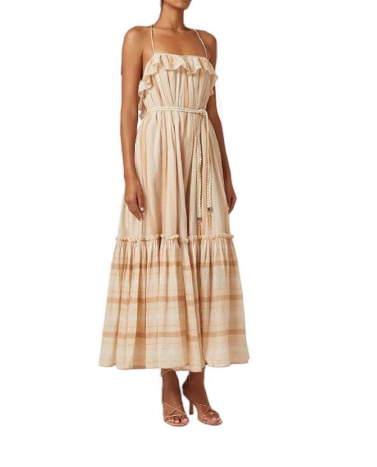 Zimmermann Anneke Swing Dress | Beige/Biscuit, Metallic, Cotton, Belted, Backles