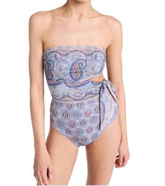 Zimmermann Vitali Placement Scarf Tie One Piece |Blue Paisley, Cut Out, Bandeaud
