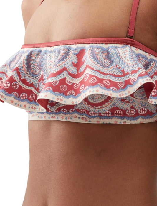 Zimmermann Vitali Frill Bandeau Bikini |Blue Paisley, Frill Top, Low Rise Bottom