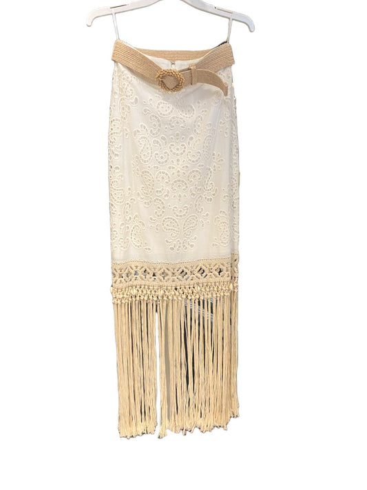 Zimmermann Vitali Fringe Skirt | White Broderie Anglaise, Rattan Belt, Cotton