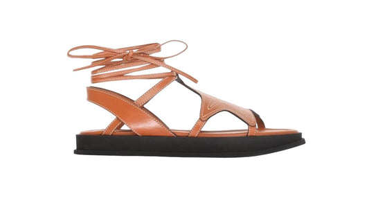 Zimmermann Rock Pool Sandals | Leather, Tan Leather, Ankle Straps, Flats, Embroi