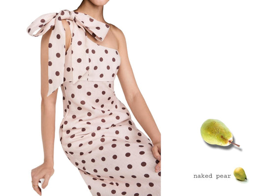 Zimmermann Acacia One Shoulder Midi Dress | Cream/Tan Polka Dot, Bow, Linen