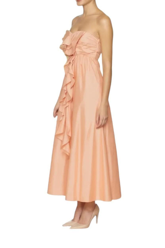Zimmermann Acacia Ruffle Maxi Dress | Tan/Terracotta, Strapless, Evening/Formal
