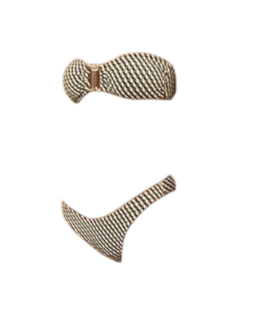 Zimmermann Lexi Knot Trim Bikini | Black/White/Gold, Low Rise, Jacquard Print