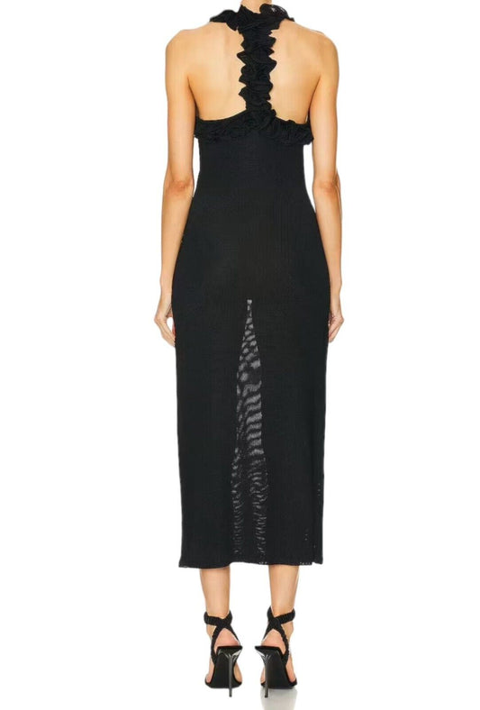 Zimmermann Matchmaker Ruffle Neck Midi Dress | Racer Back, Black, Knitted, Frill