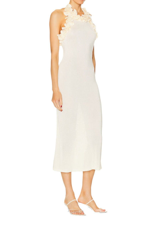Zimmermann Matchmaker Ruffle Neck Midi Dress | Racer Back, Cream, Knitted, Frill