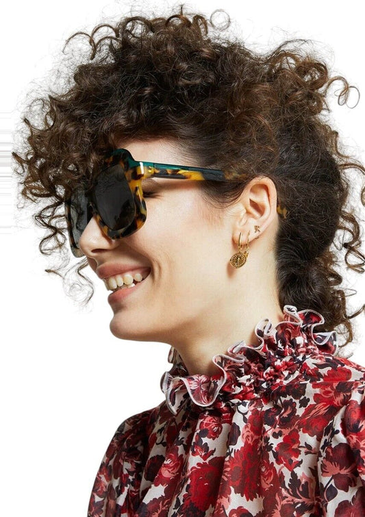 Karen Walker Overdaze Sunglasses | Crazy Tortoise Shell Acetate, Green Lenses
