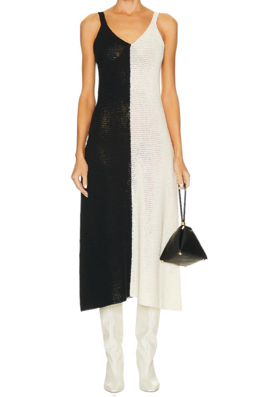Zimmermann Clover Crochet Midi Dress | VNeck, Black/White, Knitted, Colour Block