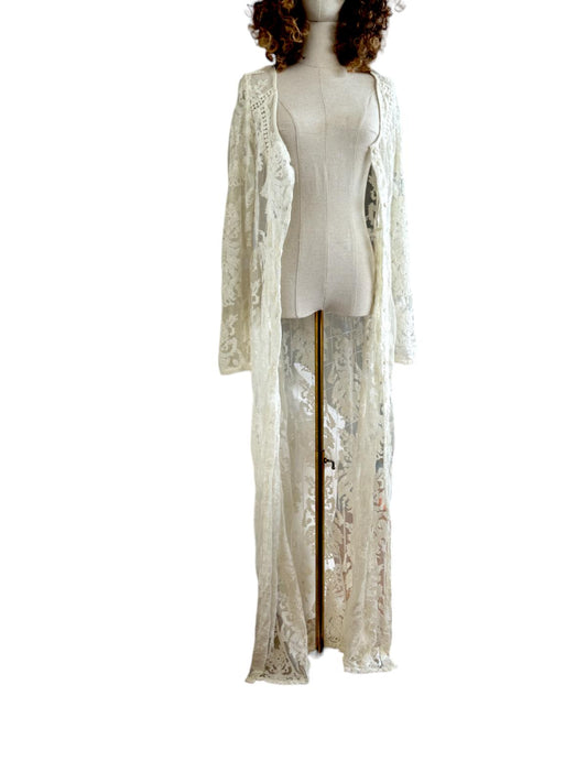 MINKPINK Lace Maxi Dress/Jacket | Button Down, White, Maxi, Long Sleeve, Sz M