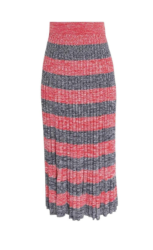 Zimmermann High Tide Rib Midi Skirt | Marle, Navy, Red, Stripe, Stretch, Pleats