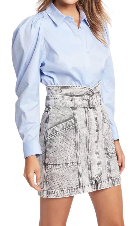 Sass & Bide Faint Heart Denim Mini Skirt |Grey Stonewash, Sz 40/10 AU,High Waist