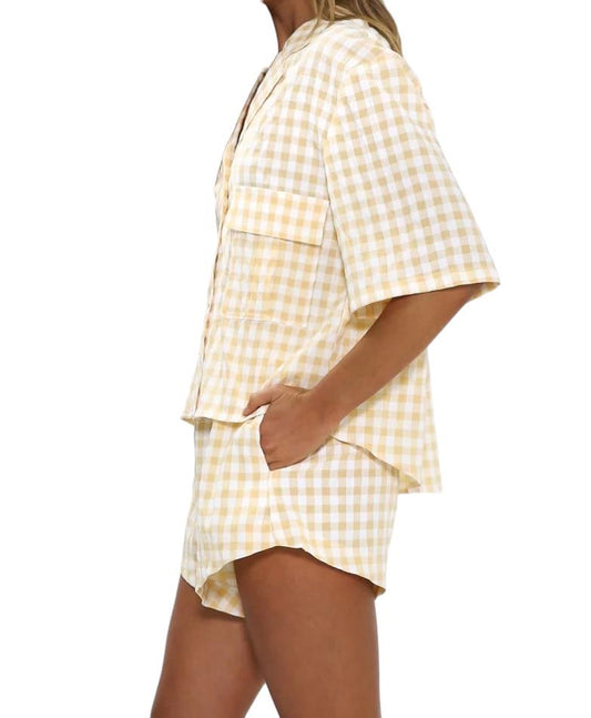 Madison The Label Gingham Shirt | Sz XS, Short Sleeve, Relaxed, Beige/White