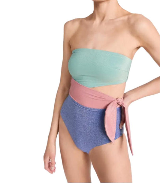 Zimmermann Clover Lurex Scarf Tie One Piece |Cutouts, Bandeau Top, Remove Straps
