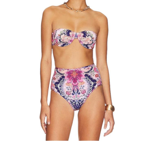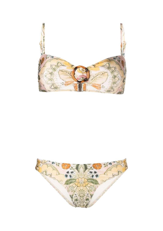 Zimmermann Laurel Bamboo Ring BIkini | Bandeau, Low Rise, Floral, Optional strap