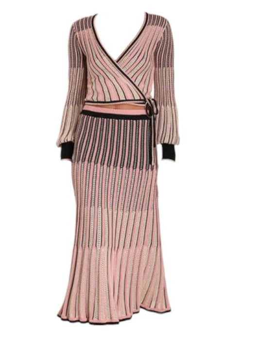 Wonderland Pointelle Wrap Top | Jersey, Cropped, Pink/Black/White, Puff Sleeve
