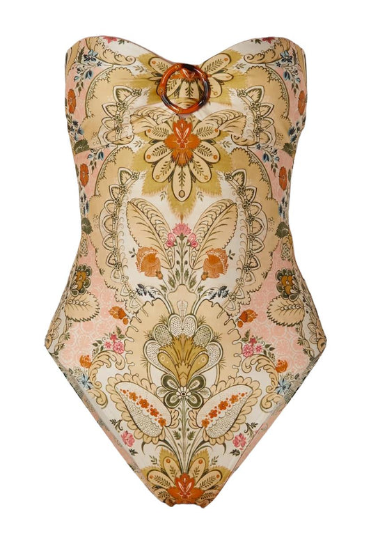 Zimmermann Laurel Bamboo Ring One Piece | Baroque Floral, Bandeau, Open Back