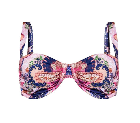 Zimmermann Laurel Ruched Underwire Bra | Balconette Bikini Top, Pink/Purple
