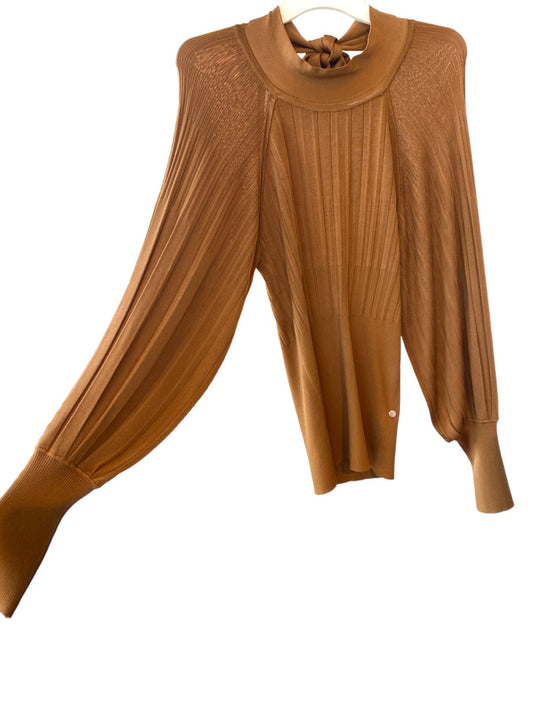 Zimmermann Ribbed Long Sleeve Top | Latte / Tan, Knit, Puff Sleeves, Tie Back