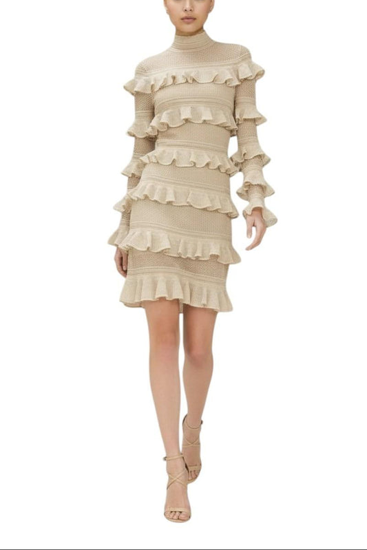 Zimmermann Illuminate Metallic Frill Mini Dress | Gold/Beige, Knitted, Tiered,
