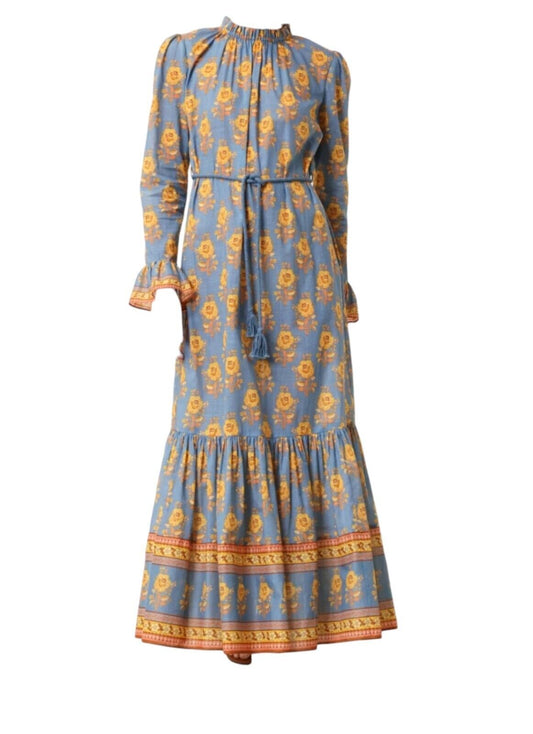 Zimmermann Junie Frill Midi/Maxi Dress | Blue Floral, Cotton, Belt, Long Sleeve