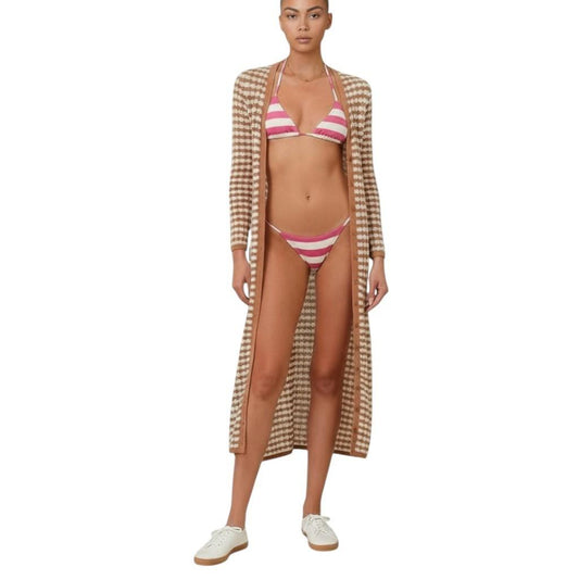 Zimmermann Everly Scallop Knit Midi Dress | Tan/Cream, Crochet, Long Sleeve