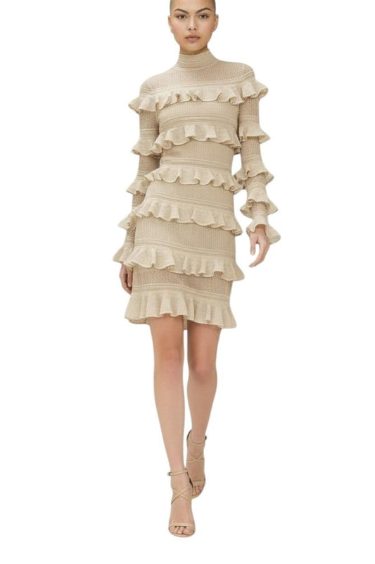 Zimmermann Illuminate Metallic Frill Mini Dress | Gold/Beige, Knitted, Tiered,
