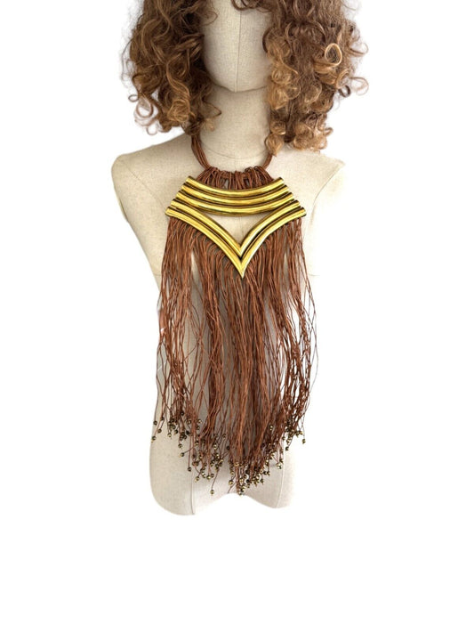 Sass & Bide Statement Necklace | Leather, Gold, Tassle, RARE!, Festival, Boho