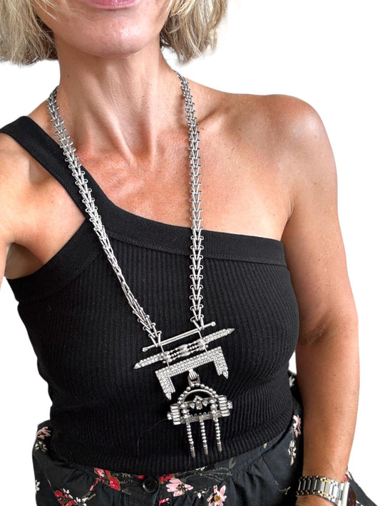 Art Deco Statement Necklace | Oxidised Silver, Crystals, Aztec, Tribal, Festival