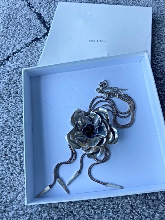 Sass & Bide Camelia Flower Necklace/Choker | RARE Hand Made, Adjustable, Silver