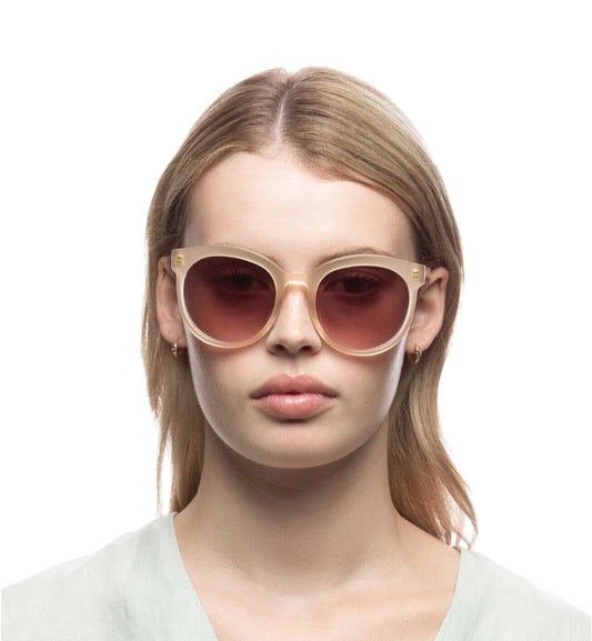 Oroton Astrid Sunglasses | Sand, Square, Clear Acetate, Grey Lenses, Hand Made