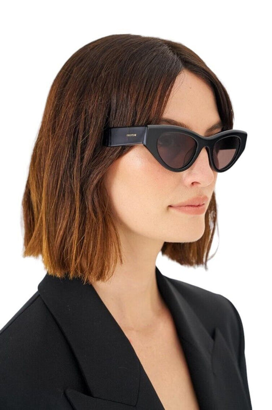 Oroton Reid B Sunglasses | Black, Cat Eye/Round, Plant-Based Acetate, Hand Made