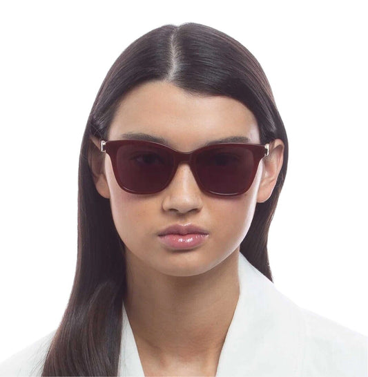 Oroton Jaymes B Sunglasses Burgundy, Berry Acetate, Brown Lenses, Hand Made